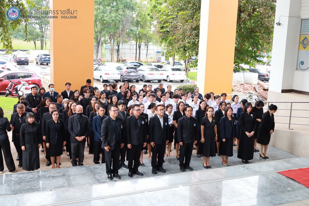 : เมื่อวันศุกร์ที่ 7 พฤศจิกายน พ.ศ. 2568 ท่าน รศ.ดร.วิภาส ทองสุทธิ์ อธิการบดีวิทยาลัยนครราชสีมา พร้อมด้วยคณะผู้บริหาร คณาจารย์ เจ้าหน้าที่ และนักศึกษา เข้าร่วมพิธีถวายความอาลัยแด่สมเด็จพระนางเจ้าสิริกิติ์ พระบรมราชินีนาถ พระบรมราชชนนีพันปีหลวง ซึ่งจัดขึ้น ณ บริเวณหน้าอาคารวิทยาลัยนครราชสีมา