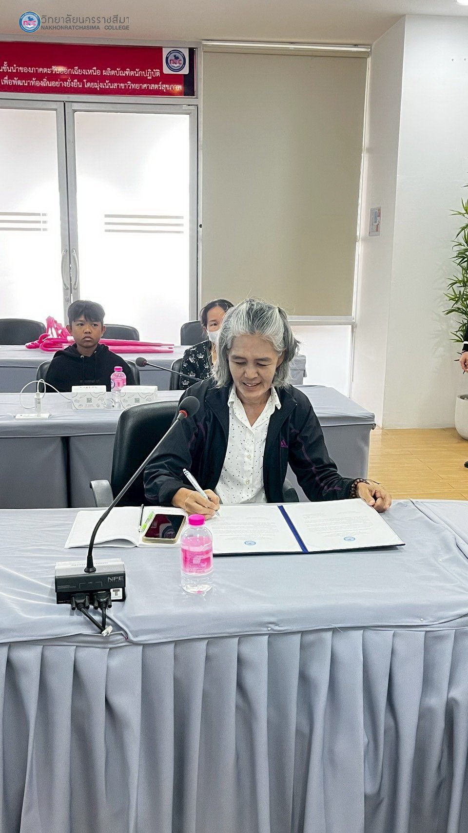 : พิธีลงนามบันทึกข้อตกลงความร่วมมือ (MOU) โครงการผลิตบัณฑิตพันธุ์ใหม่และกำลังคนที่มีสมรรถนะ เพื่อตอบโจทย์ภาคการผลิตตามนโยบายการปฏิรูปการอุดมศึกษาไทย ปี พ.ศ. 2569 หลักสูตรประเภทประกาศนียบัตร ในหัวข้อ "AI For SME Transformation: เพิ่มมูลค่าธุรกิจชุมชนสู่ยุคดิจิทัลด้วย AI" ระหว่างวิทยาลัยนครราชสีมา กับ วิสาหกิจชุมชน ตำบลบ้านใหม่