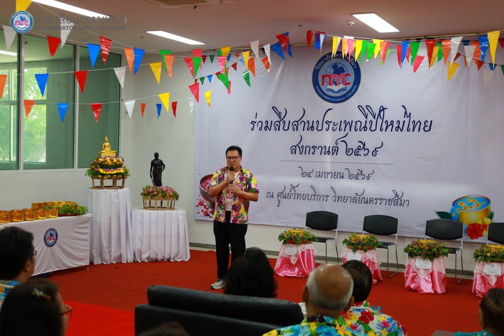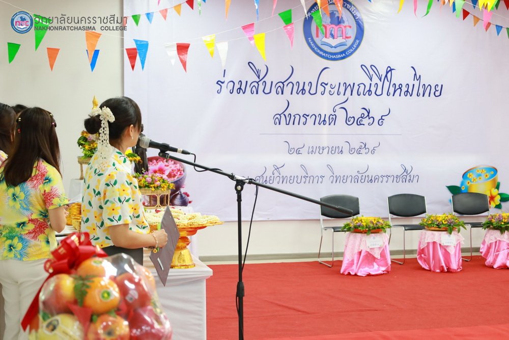 : วิทยาลัยนครราชสีมาจัดกิจกรรมสืบสานประเพณีปีใหม่ไทย สงกรานต์ 2569 ณ ศูนย์วิทยบริการ วิทยาลัยนครราชสีมา เมื่อวันที่ 24 เมษายน พ.ศ.2569 โดยท่าน ดร.ชนากานต์ ยืนยง ผู้รับใบอนุญาตวิทยาลัยนครราชสีมา และ อ.อาคม บุญปัญญา ประธานที่ปรึกษาวิทยาลัยนครราชสีมา ให้เกียรติมาเป็นประธานในพิธี พร้อมด้วย รศ.ดร.วิภาส ทองสุทธิ์ อธิการบดีวิทยาลัยนครราชสีมา คณะผู้บริหาร คณาจารย์ และเจ้าหน้าที่เข้าร่วมกิจกรรมดังกล่าว