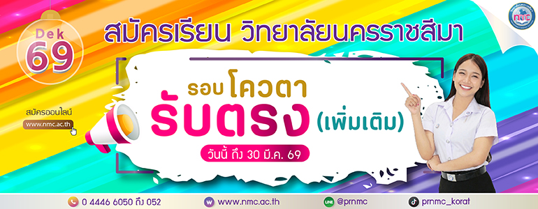 ประกาศรายชื่อผู้มีสิทธิ์สอบคัดเลือกเข้าศึกษาหลักสูตรวิทยาศาสตรบัณฑิต (สาขาวิชาเทคนิคการแพทย์) วิทยาลัยนครราชสีมา ประจำปีการศึกษา 2569 (รับตรง รอบ 1)