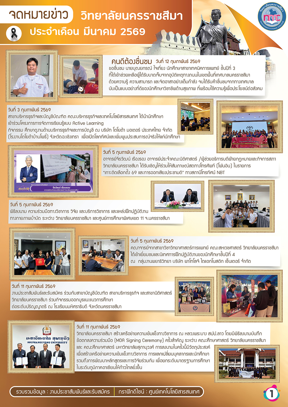 โครงการอบรมเพิ่มพูนทักษะการดูแลมารดาหลังคลอดด้วยศาสตร์การแพทย์แผนไทย ระหว่างวันที่ 19–20 มีนาคม 2569 ณ ห้องประชุมชั้น 3 วิทยาลัยนครราชสีมา ได้รับเกียรติจากท่านวีระชาติ ทุ่งไผ่แหลม รองนายกองค์การบริหารส่วนจังหวัดนครราชสีมา เป็นประธานในพิธีเปิด
