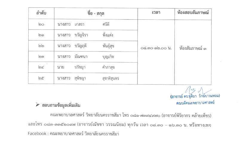 : ประกาศรายชื่อผู้มีสิทธิ์เข้ารับการสัมภาษณ์ หลักสูตรพยาบาลศาสตรบัณฑิต คณะพยาบาลศาสตร์ ปีการศึกษา 2569 ( รับตรงรอบ 2)
